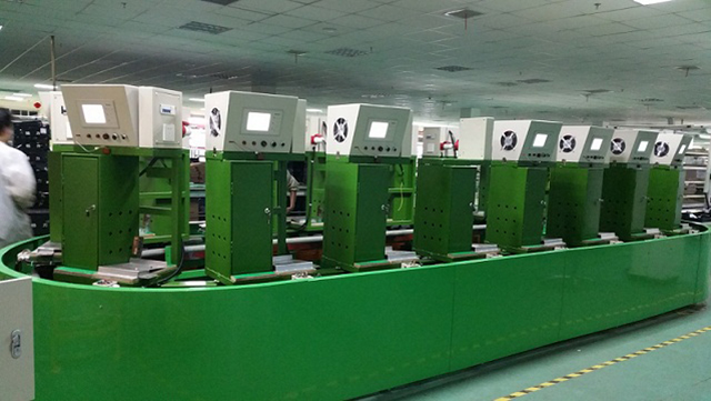 此環(huán)形檢測線是我公司為蕪湖格力電子分廠變頻外機DCT測試特別研制的。線體采用地軌鏈驅(qū)動,滑觸線供電,結(jié)構(gòu)緊湊,共18個工位,長寬只有 7100mm*2400mm;操作方便,分別在一個上件點和一個下件點提供人力即可完成作業(yè),將原來的分散間斷作業(yè)改為連續(xù)作業(yè),以系統(tǒng)自動運行保障生產(chǎn) 節(jié)拍和產(chǎn)量的完成,提高了勞動生產(chǎn)效率。